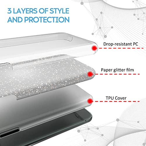 N NEWTOP 3in1 Cover Compatibile APPLE IPHONE 13 PRO MAX, Custodia Case GLITTER Brillantini Paper Interno Bling TPU + PC Flessibile Morbida Case Posteriore Lucida Protezione Fotocamera (Silver)