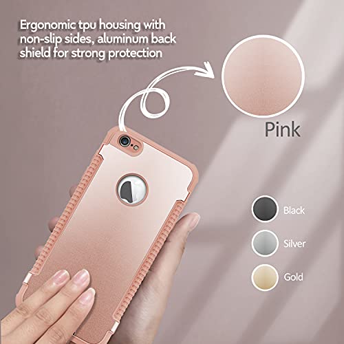 N NEWTOP Cover Compatibile con Apple iPhone 6 Plus e 6S Plus, Custodia MOTOMO Grip TPU Alluminio Resistente Flessibile Case Posteriore Protettiva (Rosa)