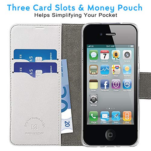 N NEWTOP Cover Compatibile per Apple iPhone 4 / 4S, HQ Lateral Custodia Libro Flip Chiusura Magnetica Portafoglio Simil Pelle Stand (Bianco)