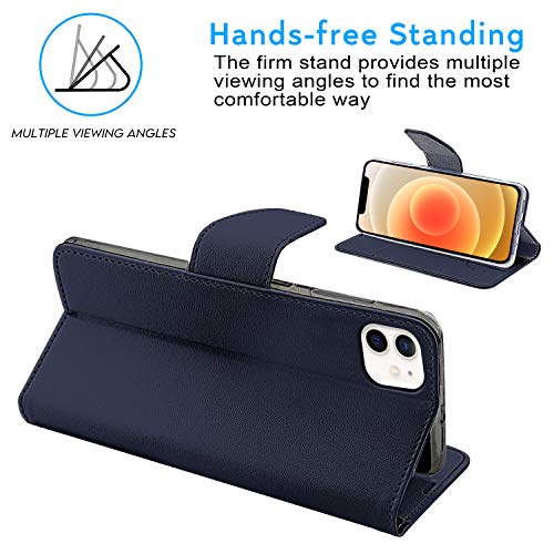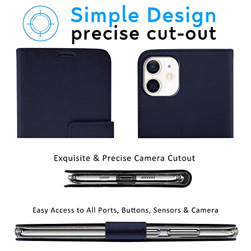N NEWTOP Cover Compatibile con Apple iPhone 12 Mini, HQ Lateral Custodia Libro Flip Chiusura Magnetica Portafoglio Simil Pelle Stand (Blu)