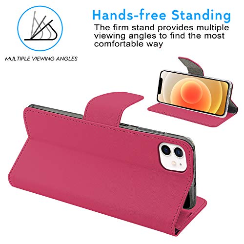 N NEWTOP Cover Compatibile con Apple iPhone 12 Mini, HQ Lateral Custodia Libro Flip Chiusura Magnetica Portafoglio Simil Pelle Stand (Fucsia)