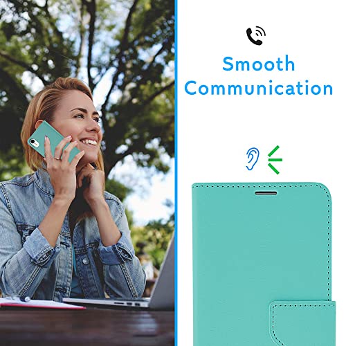NewTop Cover Compatibile per Apple iPhone XR, HQ Lateral Custodia Case Flip Magnetica Portafoglio Simil Pelle Stand (Acquamarine)