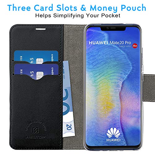 NewTop Cover Compatibile per Huawei Mate 20/Lite/PRO, HQ Lateral Custodia Libro Flip Magnetica Portafoglio Simil Pelle Stand (per Mate 20 PRO, Nero)