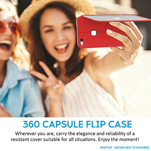 N NEWTOP Cover Compatibile per Huawei P10 Lite, Chiusura Magnetica 360 Capsule Flip Custodia Libro per Carta di Credito Simil Pelle TPU Interno Funzione Stand Supporto (Rosso)