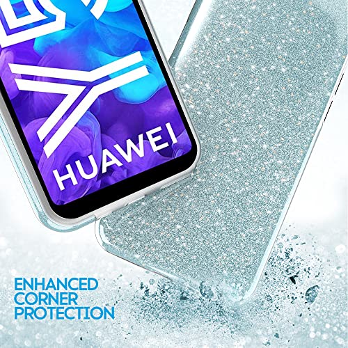 N NEWTOP 3in1 Cover Compatibile con Huawei Y5 2018 / Honor 7S, Custodia Case con GLITTER Brillantini Paper Interno Bling TPU + PC Flessibile Morbida Case Posteriore Lucida Glitterata (Azzurro)