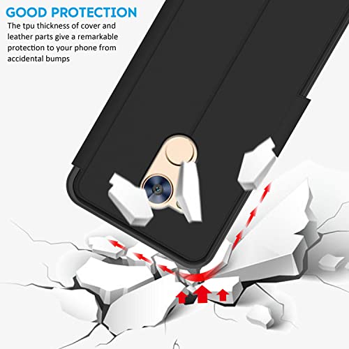 N NEWTOP Cover Compatibile per Huawei Honor 6A, HQ Windows Notifiche Display Risposta Finestra Custodia Libro Flip Magnetica Simil Pelle Stand Protettiva (Nero)