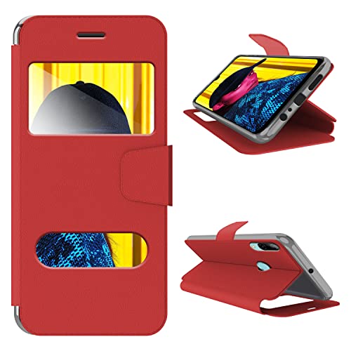 N NEWTOP Cover Compatibile per Huawei P Smart 2019 / Honor 10 Lite, HQ Windows Notifiche Display Risposta Finestra Custodia Libro Flip Magnetica Simil Pelle Stand Protettiva (Rosso)