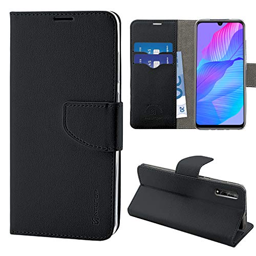 N NEWTOP Cover Compatibile per Huawei P Smart S - Y8P, HQ Lateral Custodia Libro Flip Chiusura Magnetica Portafoglio Simil Pelle Stand (Nero)