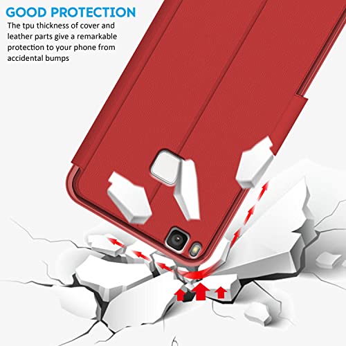 N NEWTOP Cover Compatibile per Huawei P9 Lite, HQ Windows Notifiche Display Risposta Finestra Custodia Libro Flip Magnetica Simil Pelle Stand Protettiva (Rosso)