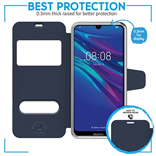 N NEWTOP Cover Compatibile per Huawei Y6 2019, HQ Windows Notifiche Display Risposta Finestra Custodia Libro Flip Magnetica Simil Pelle Stand Protettiva (Blu)