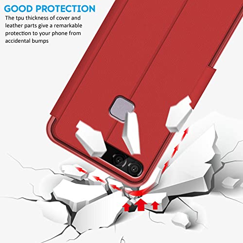 N NEWTOP Cover Compatibile per Huawei P9 Plus, HQ Windows Notifiche Display Risposta Finestra Custodia Libro Flip Magnetica Simil Pelle Stand Protettiva (Rosso B)