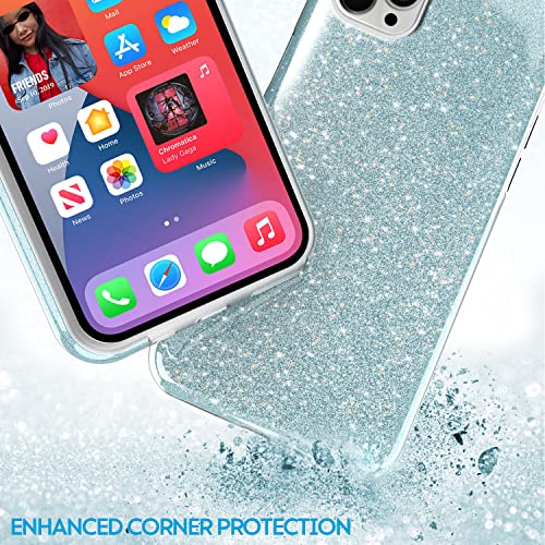 N NEWTOP 3in1 Cover Compatibile con iPhone 12-12 Pro, Custodia Case con GLITTER Brillantini Paper Interno Bling TPU + PC Flessibile Morbida Case Posteriore Lucida Glitterata (Azzurro)