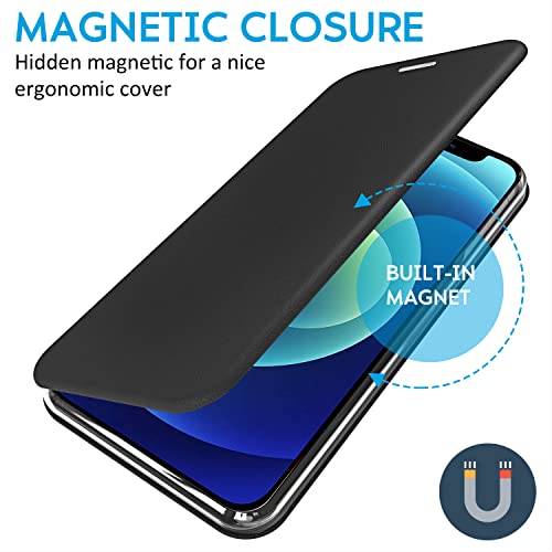 N NEWTOP Cover Compatibile per iPhone 12 Mini, Chiusura Magnetica 360 Capsule Flip Custodia Libro per Carta di Credito Simil Pelle TPU Interno Funzione Stand Supporto (Nero)