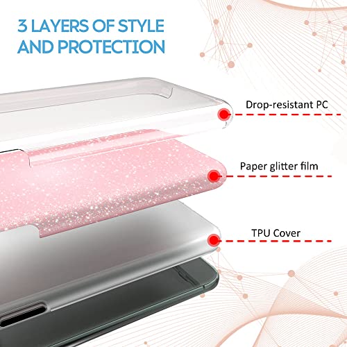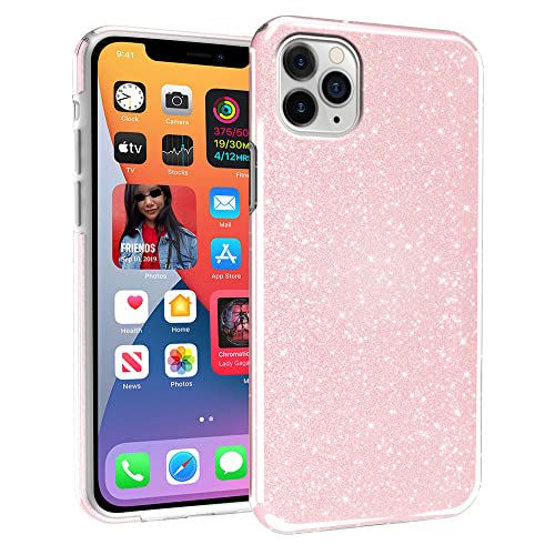 N NEWTOP 3in1 Cover Compatibile con iPhone 11 Pro, Custodia Case con GLITTER Brillantini Paper Interno Bling TPU + PC Flessibile Morbida Case Posteriore Lucida Glitterata (Rosa)