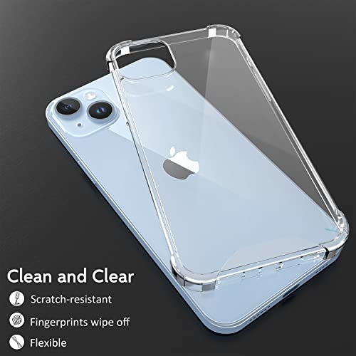 N NEWTOP Cover Compatibile con iPhone 14, Posteriore Semi Rigida TPU Hard Clear Anti-Shock Custodia Guscio Case Retro Protettiva Semirigida Trasparente Angoli Rinforzati (Cover +2 Pellicole)