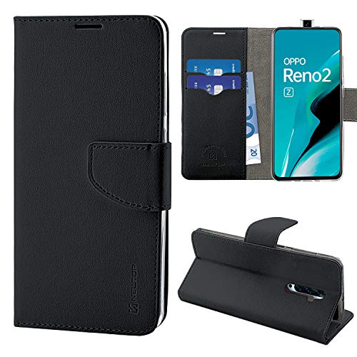 N NEWTOP Cover Compatibile con Oppo Reno 2Z / 2F, HQ Lateral Custodia Libro Flip Chiusura Magnetica Portafoglio Simil Pelle Stand (Nero)