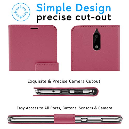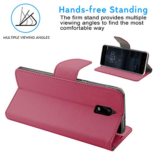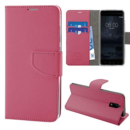 N NEWTOP Cover Compatibile per Nokia 6, HQ Lateral Custodia Libro Flip Chiusura Magnetica Portafoglio Simil Pelle Stand (Fucsia)