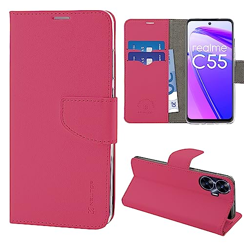 N NEWTOP Cover Compatibile con REALME C55, HQ Lateral Custodia Libro Flip Chiusura Magnetica Portafoglio Simil Pelle Stand Protezione Completa Case TPU Anti Urto (Fucsia)