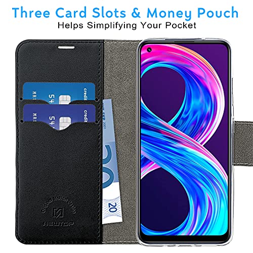 N NEWTOP Cover Compatibile per Realme 8 4G / 8 PRO, HQ Lateral Custodia Libro Flip Magnetica Portafoglio Simil Pelle Stand Protettiva (Nero)