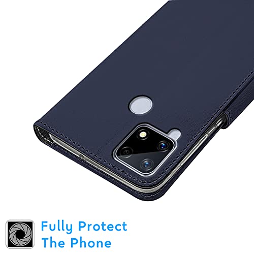 N NEWTOP Cover Compatibile per Realme 7i / C15 / C12, HQ Lateral Custodia Libro Flip Magnetica Portafoglio Simil Pelle Stand Protettiva (Blu)