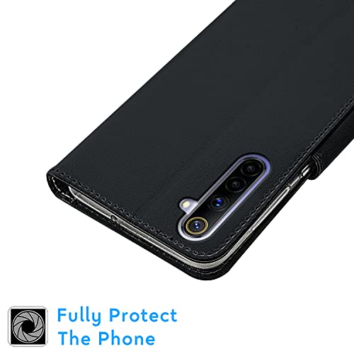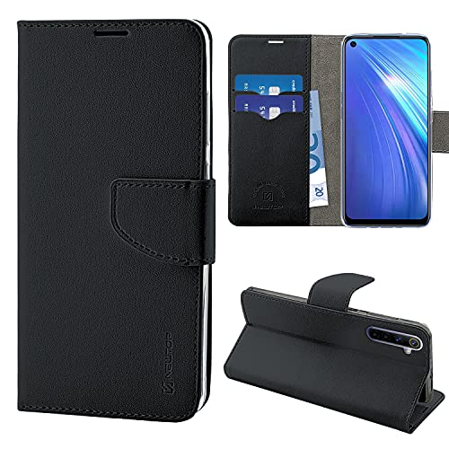 N NEWTOP Cover Compatibile per Realme 6 / 6S, HQ Lateral Custodia Libro Flip Magnetica Portafoglio Simil Pelle Stand Protettiva (Nero)