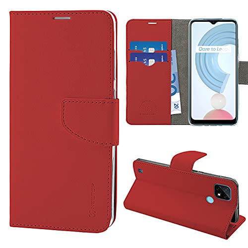 N NEWTOP Cover Compatibile per Realme C21, HQ Lateral Custodia Libro Flip Magnetica Portafoglio Simil Pelle Stand Protettiva (Rosso)