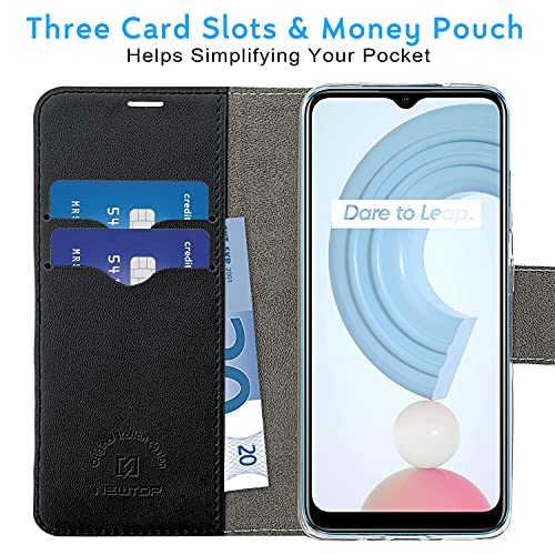 N NEWTOP Cover Compatibile per Realme C21, HQ Lateral Custodia Libro Flip Magnetica Portafoglio Simil Pelle Stand Protettiva (Nero)