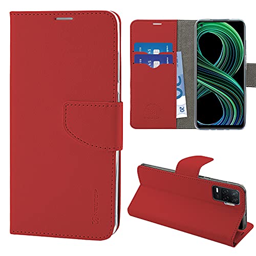 N NEWTOP Cover Compatibile per Realme 8 5G, HQ Lateral Custodia Libro Flip Magnetica Portafoglio Simil Pelle Stand Protettiva (Rosso)