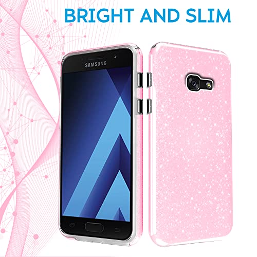 N NEWTOP 3in1 Cover Compatibile con Samsung Galaxy A3 2017, Custodia Case con GLITTER Brillantini Paper Interno Bling TPU + PC Flessibile Morbida Case Posteriore Lucida Glitterata (Fucsia)