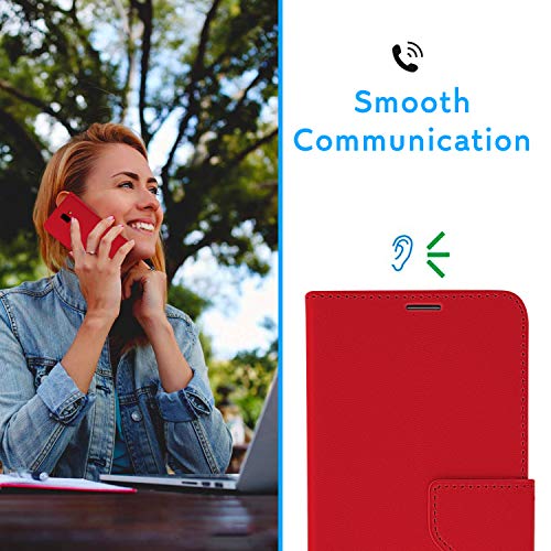N NEWTOP Cover Compatibile per Samsung Galaxy J6 Plus (2018), HQ Lateral Custodia Libro Flip Chiusura Magnetica Portafoglio Simil Pelle Stand (Rosso)