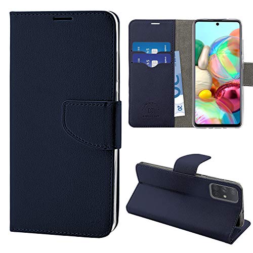 NewTop Cover Compatibile per Samsung Galaxy A71, HQ Lateral Custodia Libro Flip Magnetica Portafoglio Simil Pelle Stand (Blu)