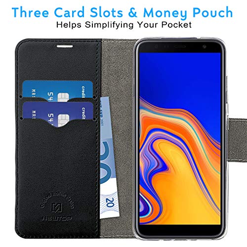 N NEWTOP Cover Compatibile per Samsung Galaxy J4 Plus, HQ Lateral Custodia Libro Flip Chiusura Magnetica Portafoglio Simil Pelle Stand (Nero)