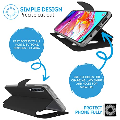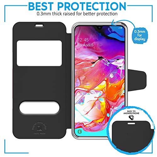 N NEWTOP Cover Compatibile per Samsung Galaxy A70, HQ Windows Notifiche Display Risposta Finestra Custodia Libro Flip Magnetica Simil Pelle Stand Protettiva (Nero)