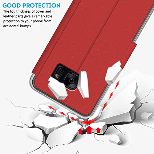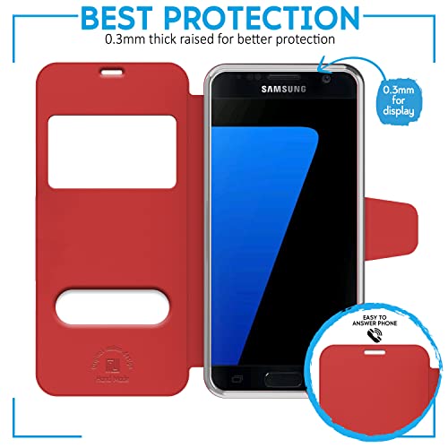 N NEWTOP Cover Compatibile per Samsung Galaxy S7 Edge, HQ Windows Notifiche Display Risposta Finestra Custodia Libro Flip Magnetica Simil Pelle Stand Protettiva (Rosso)