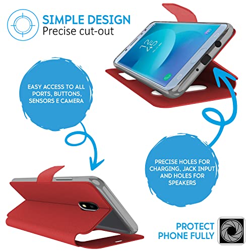N NEWTOP Cover Compatibile per Samsung Galaxy J5 2017, HQ Windows Notifiche Display Risposta Finestra Custodia Libro Flip Magnetica Simil Pelle Stand Protettiva (Rosso)