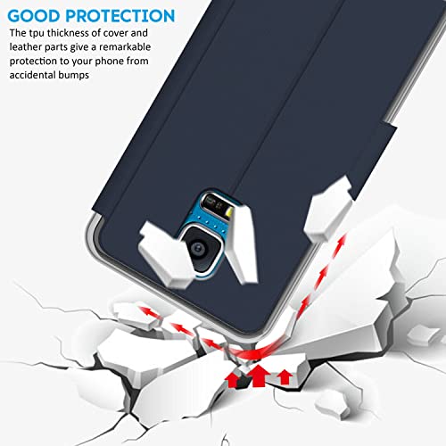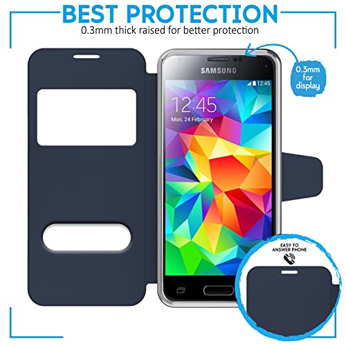 N NEWTOP Cover Compatibile per Samsung Galaxy S5 Mini, HQ Windows Notifiche Display Risposta Finestra Custodia Libro Flip Magnetica Simil Pelle Stand Protettiva (Blu)
