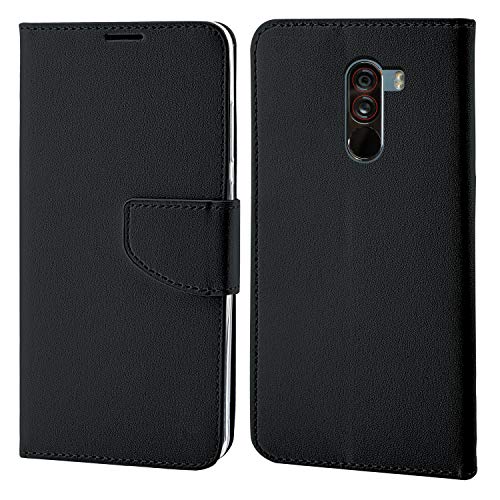 N NEWTOP Cover Compatibile per Xiaomi POCOPHONE F1, HQ Lateral Custodia Libro Flip Chiusura Magnetica Portafoglio Simil Pelle Stand (Nera)