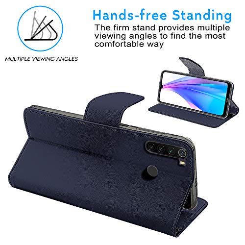 N NEWTOP Cover Compatibile per Xiaomi Redmi Note 8 (2019/2021), HQ Lateral Custodia Libro Flip Chiusura Magnetica Portafoglio Simil Pelle Stand (Blu)