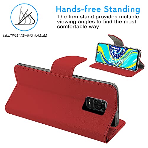 N NEWTOP Cover Compatibile per Xiaomi Redmi Note 9S - Pro - Max, HQ Lateral Custodia Libro Flip Chiusura Magnetica Portafoglio Simil Pelle Stand (Rosso)