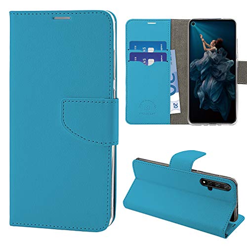 NewTop HQ Lateral Cover Custodia Libro Flip Magnetica Portafoglio Simil Pelle Stand Compatibile per Huawei Nova 5T/Honor 20 (Azzurro)