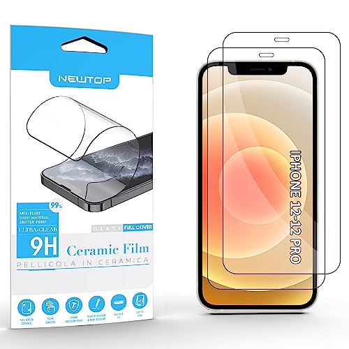 N NEWTOP Pellicola CERAMIC Compatibile con iPhone 12-12 PRO, Lucida FULL GLUE Glass 0.24mm 9D Vetro Proteggi Schermo Display Temperato Anti Urto Cornice Nera Graffio Completa Protezione Pezzi (2)
