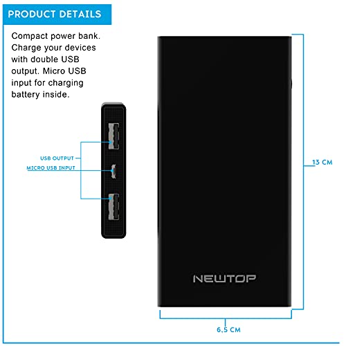 N NEWTOP PB05 Power Bank Alluminio Doppia Ricarica USB Caricabatterie Portatile Universale 4000mAh per Aereo Bagaglio a Mano USB Batteria Esterna per Cellulari Smartphone (Nero)