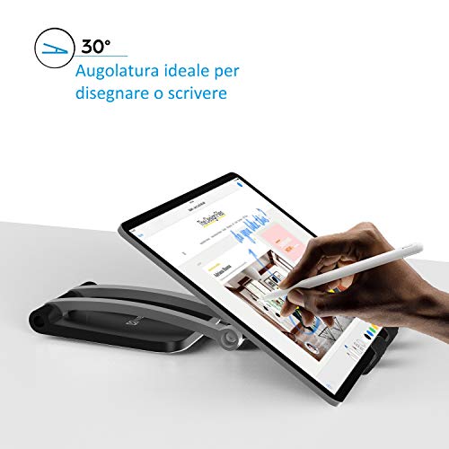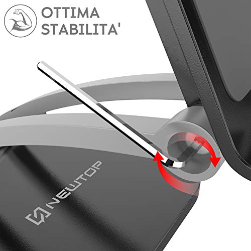 N NEWTOP Supporto Stand Base da Tavolo ST-26 Universale Brucola Regolabile Fissaggio Forte Stabile Porta Flessibile Reggi Dock per Tablet Smartphone iPad Air Pro Mini Samsung Tab (Nero)