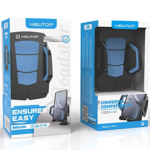 N NEWTOP Supporto ST04 Universale Parabrezza Cruscotto Ventosa Vetro Forte Regolabile con Rotazione a 360 Gradi da Caravan Furgone Camion Auto Cellulare Smartphone Telefono (Nero+Azzurro)