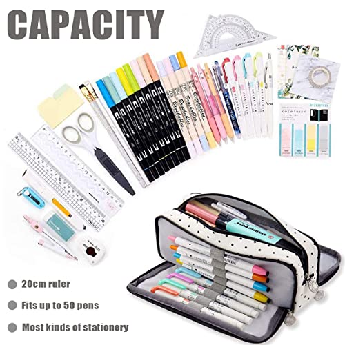 【Astuccio per matite di grande capacità】 Dimensioni: 21,5 x 9 x 7 cm. Lo scomparto principale ha spazio sufficiente per penne e matite e un righello da 20 cm e può contenere fino a 40 penne e altre cose di cui uno studente ha bisogno. Ideale per riporre oggetti personali e cancelleria.