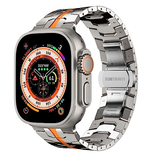 NewWays 49 mm, 45 mm, 44 mm, 42 mm, compatibile con Apple Watch, cinturino di ricambio in acciaio inox, adatto per iWatch Ultra 2/Ultra, Series 9/8/7/6/5/4/3/2/1/SE, titanio/arancione