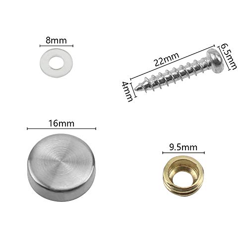 NewZC 12PCS Viti a Specchio Acciaio Inossidabile Tappi Decorativi con Tappo a Vite Decorativo da 16mm di Diametro Chiodi in Rame per Fissaggio di Specchio Vetro Insegne Pubblicitarie e Mobili