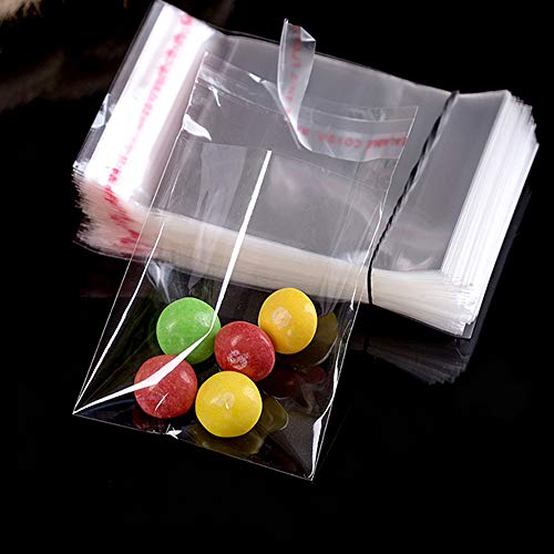 NewZC 300 pezzi Sacchetti di Plastica per Panetteria Cellophane Trasparente 7x8 cm Auto-adesivo Borsa OPP Piccolo Imballo Sacchetto per Alimenti Sacchetto per Biscotti Cioccolato Caramelle