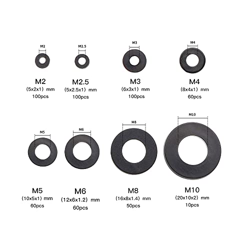 NewZC Rondelle in Nylon Nero 540 Pezzi Guarnizione in Nylon Rondella Piatta Nera Rondelle Distanziali Rotonde M2 M2.5 M3 M4 M5 M6 M8 M10 per Rubinetto Idraulico Riparazione Meccanica