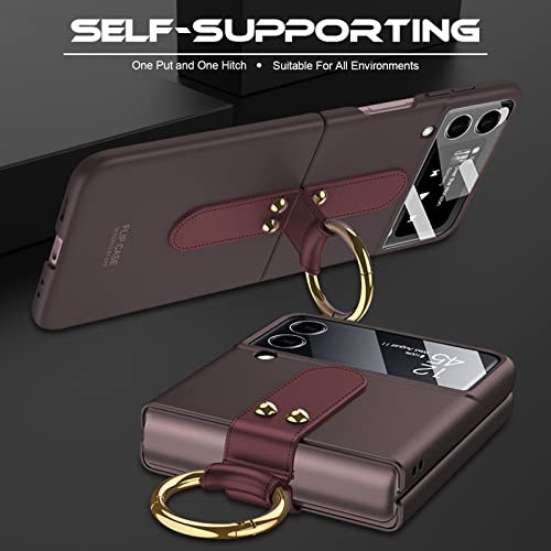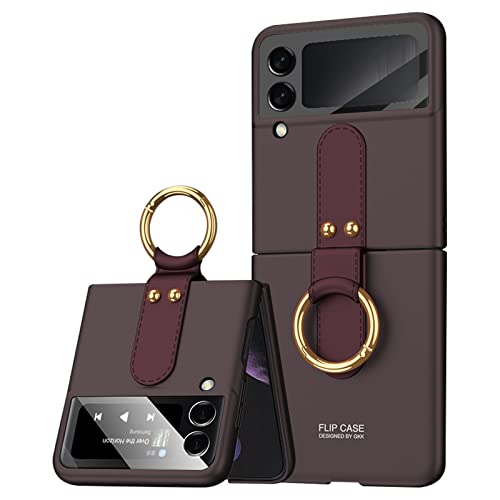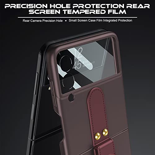 NEWZEROL Cover con Supporto Video ad Anello Compatibile per Samsung Galaxy Z Flip 4 5G, Cornice Protettiva per PC + Cover Proteggi Schermo per Fotocamera in Vetro Temperato - Rosso